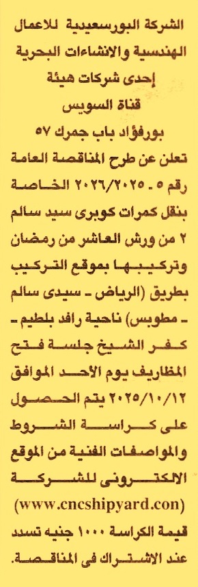 HOT information مناقصة عامة رقم 5/2025/2026 لعملية نقل كمرات كوبري سيد سالم 2 من ورش العاشر من رمضان وتركيبها بموقع التركيب بطريق “الرياض, سيدي سالم, مطوبس” ناحية رافد بلطيم – كفر الشيخ عن جريدة الجمهورية Post navigation الوحدة المحلية لمركز أبو المطامير جامعة عين شمس