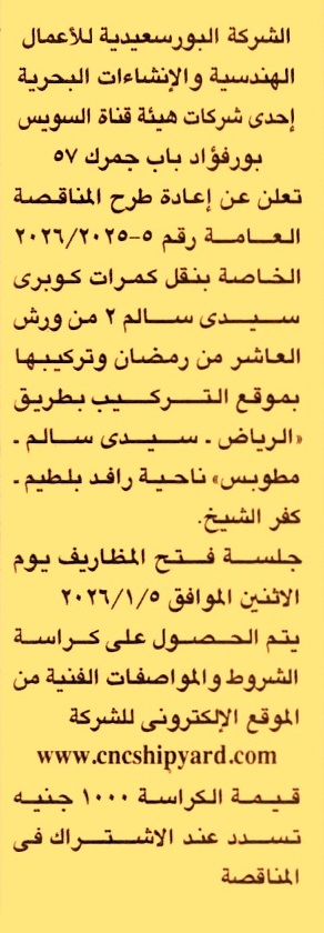 إعادة مناقصة عامة رقم 5/2025/2026 لعملية