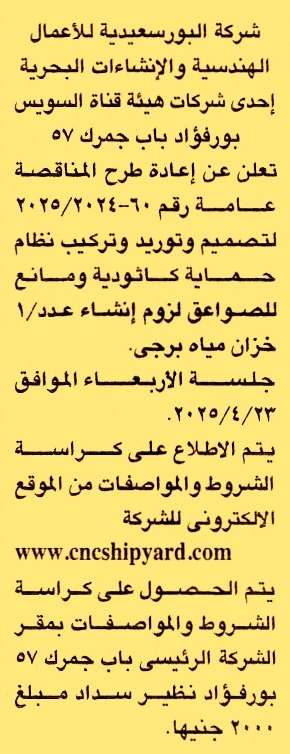 مناقصة عامة رقم 60/2024/2025 لعملية
