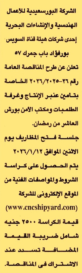 مناقصة عامة رقم 26/2025/2026 لعملية