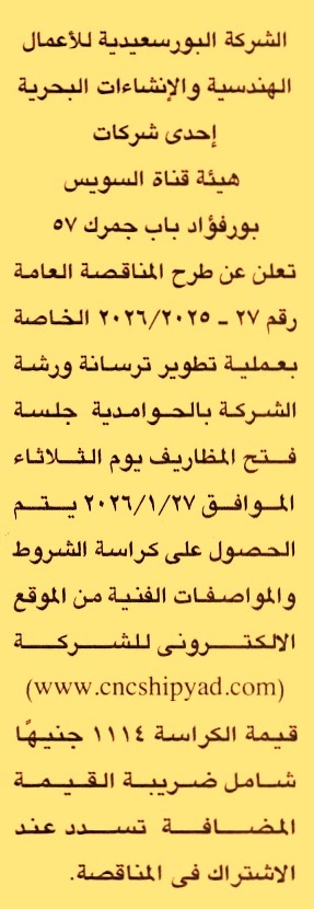 مناقصة عامة رقم 27/2025/2026 لعملية