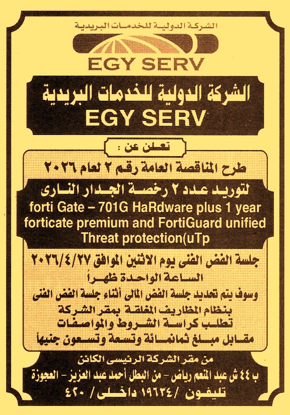 مناقصة عامة رقم 2/2026 لعملية