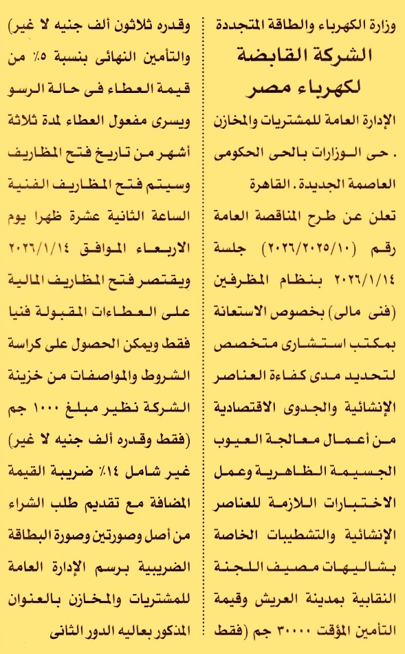 مناقصة عامة رقم 10/2025/2026 لعملية