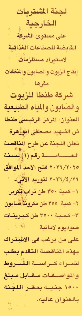 مناقصة عامة رقم 1/2025/2026 لعملية