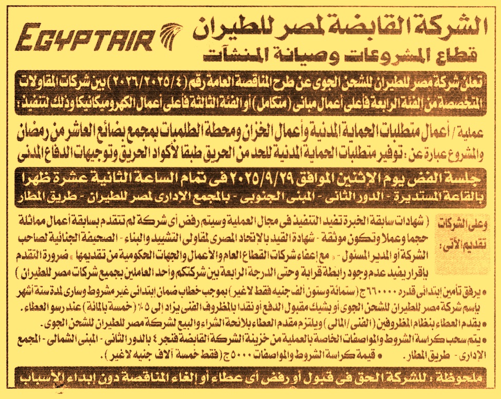 مناقصة عامة رقم 4/2025/2026 لعملية