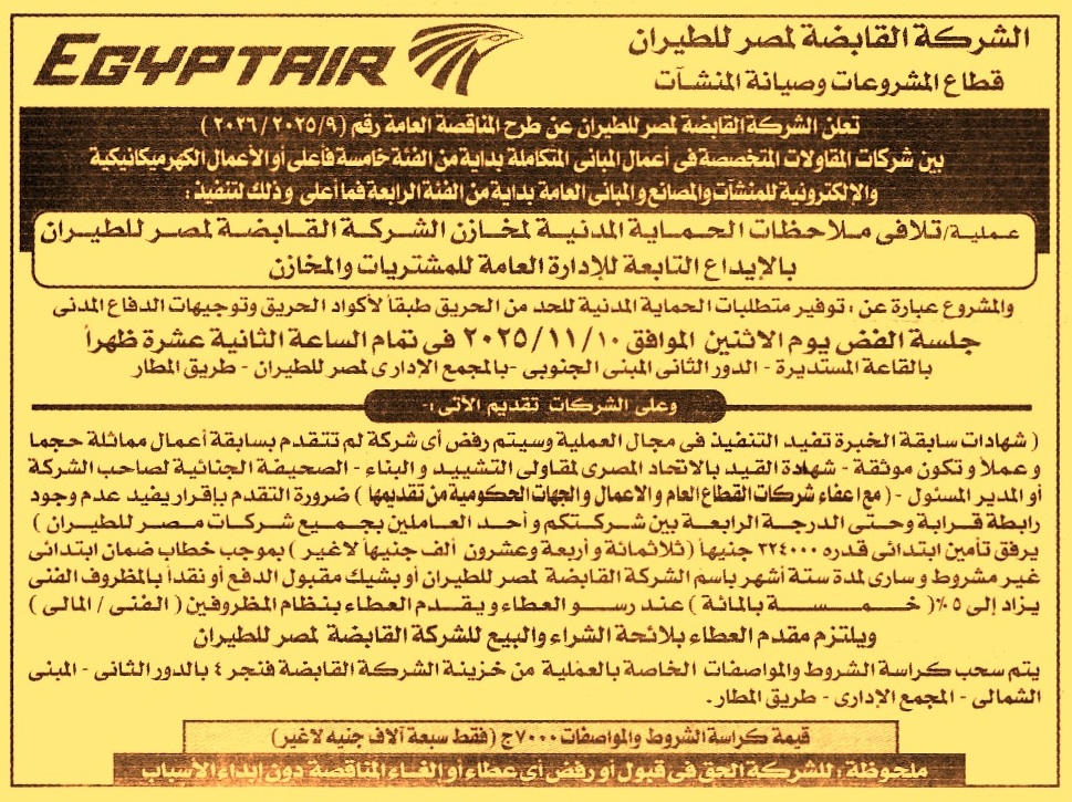 مناقصة عامة رقم 9/2025/2026 لعملية