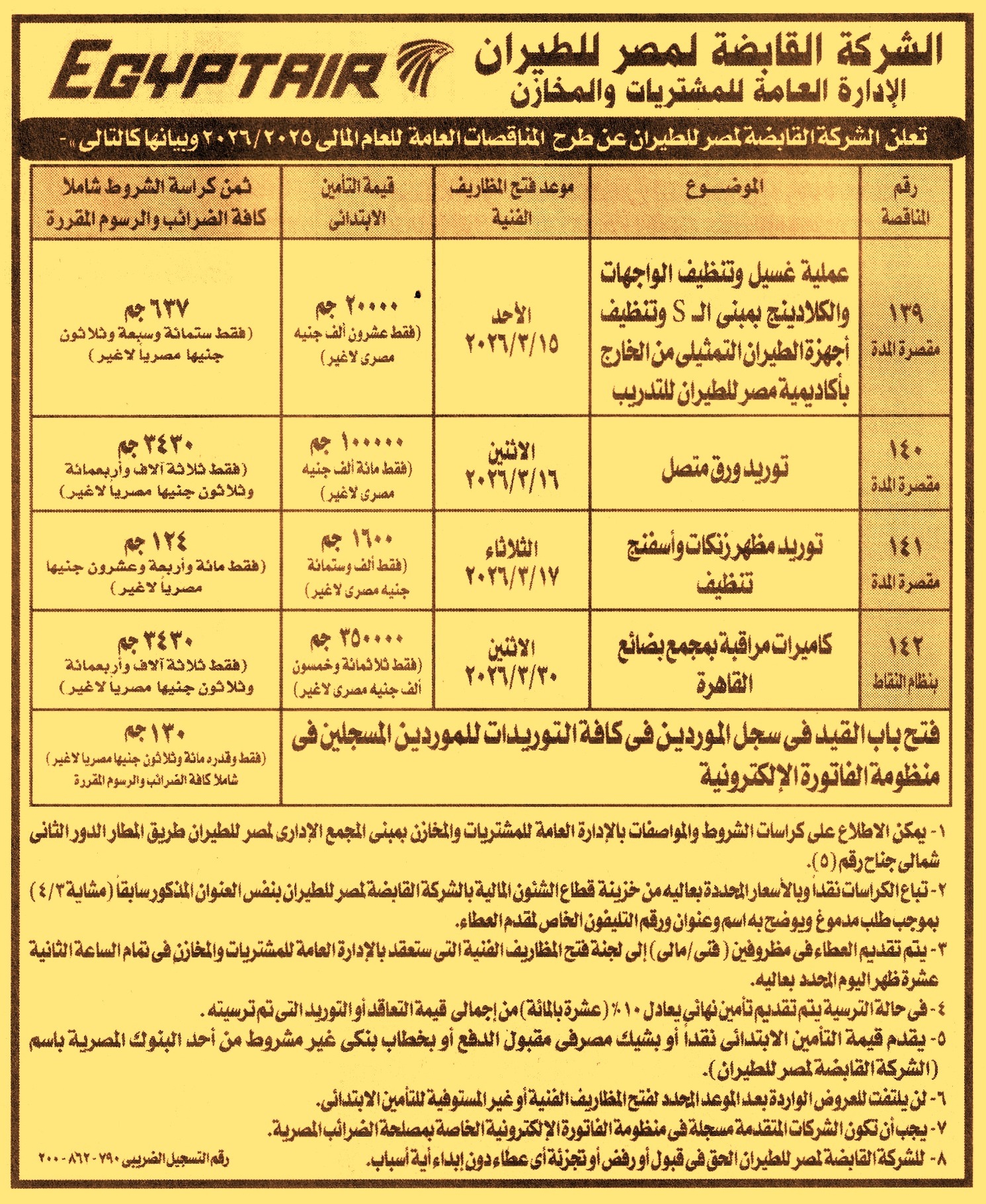 مناقصة عامة رقم 139/2025/2026 لعملية