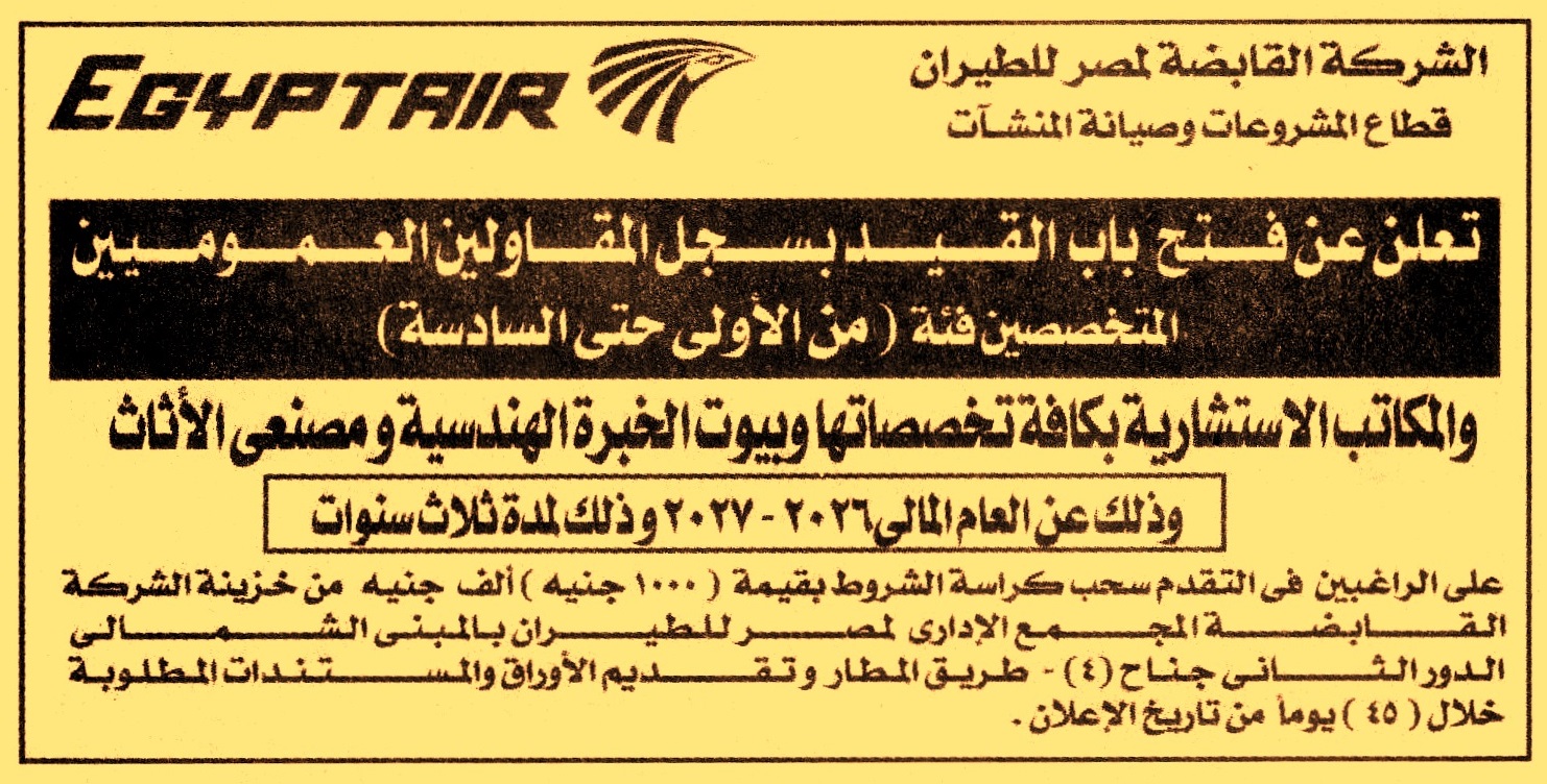 (تقدم المستندات خلال 45 يوم من تاريخ الإعلان)