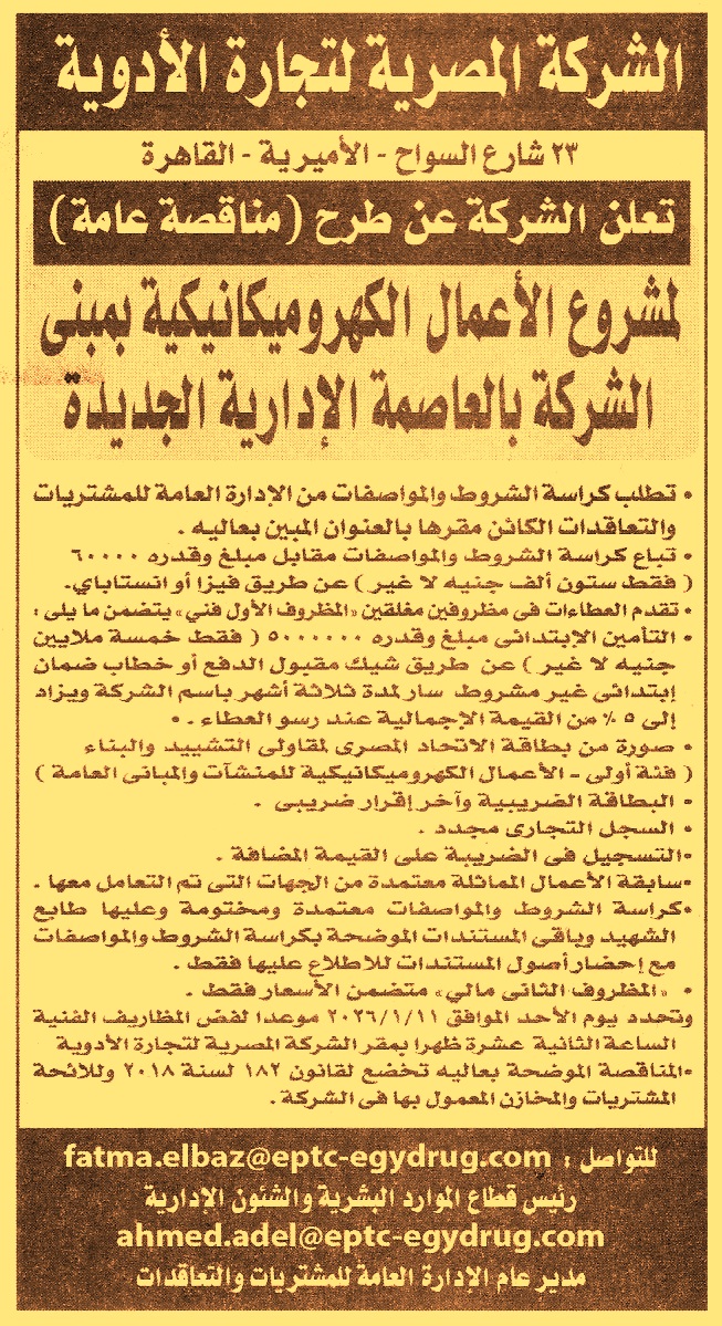 تنفيذ الأعمال الكهروميكانيكية بمبنى الشركة بالعاصمة الإدارية