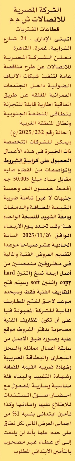 مناقصة عامة رقم 232/2025/4 لعملية