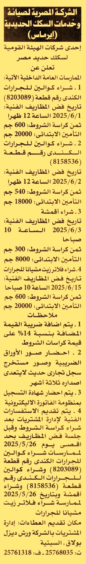 وأخر موعد لتقديم الإستفسارات يوم 26/5/2025)
