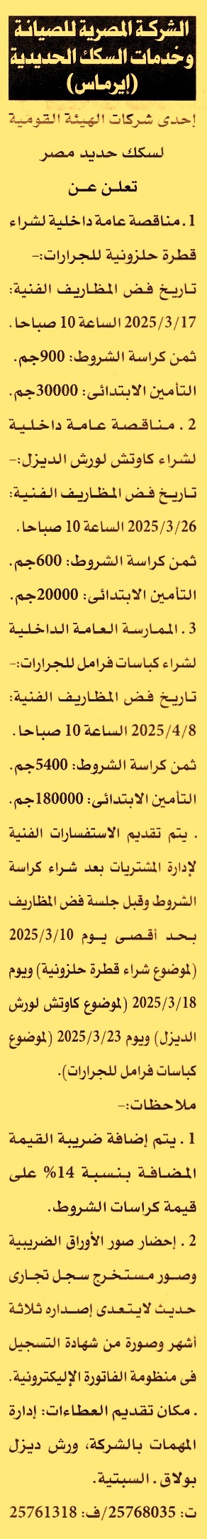 وأخر موعد لتقديم الإستفسارات يوم 10/3/2025)