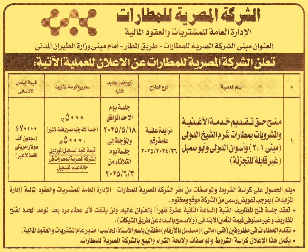 تعلن الشركة عن تأجيل جلسة المزايدة العلنية العامة رقم 36/2024/2025 لعملية