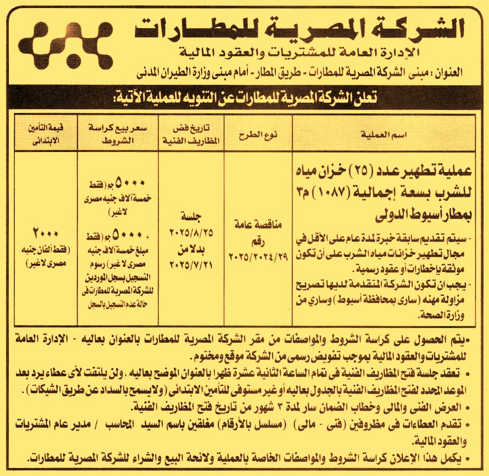 تطهير عدد 25 خزان مياه شرب بسعة إجمالي 1087م3 بمطار أسيوط الدولي