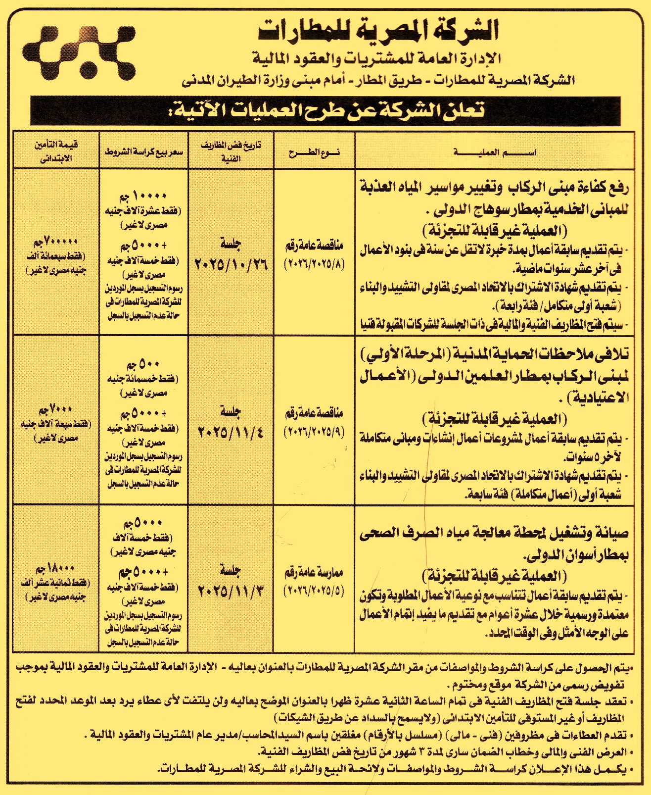 ومدة سريان العطاءات وخطاب الضمان 3 أشهر