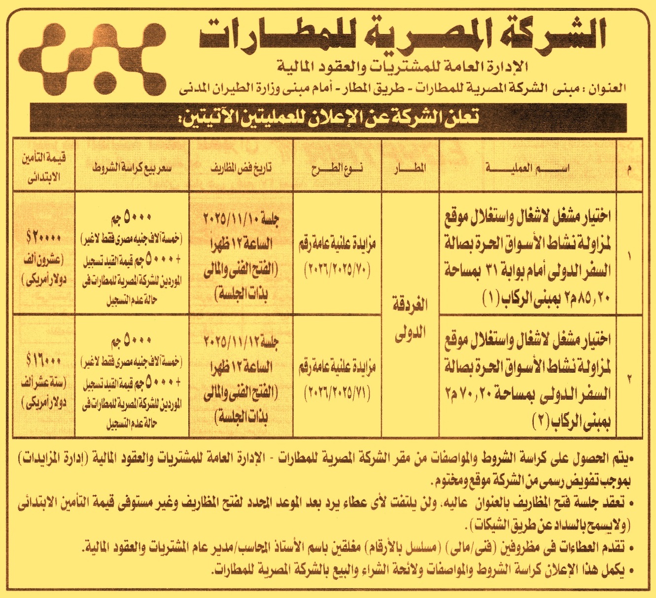 مزايدة علنية عامة رقم 70/2025/2026 لعملية
