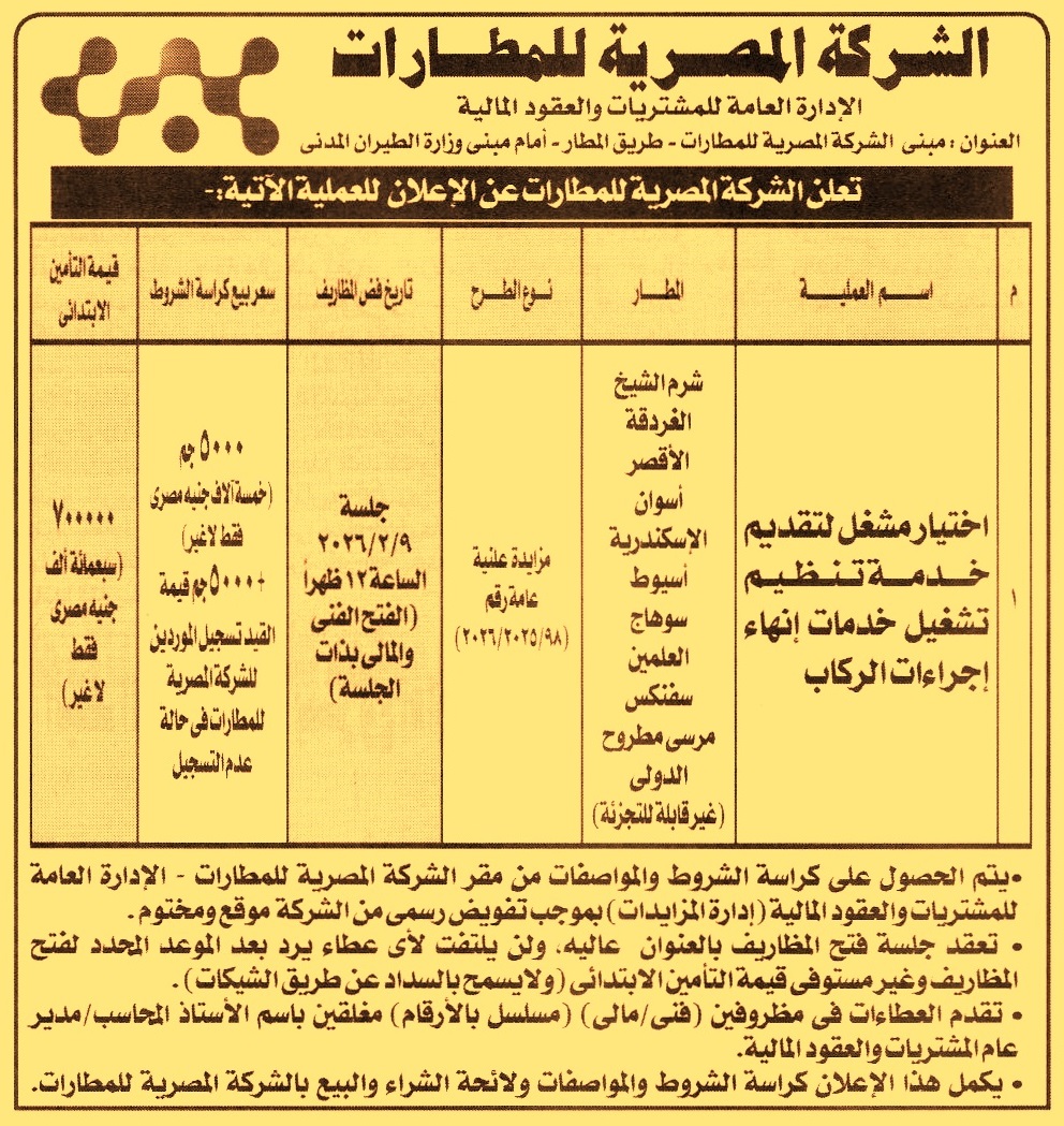 اختيار مشغل لتقديم خدمة تنظيم تشغيل خدمات إنهاء إجراءات الركاب