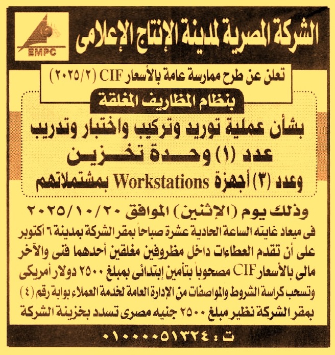 HOT information ممارسة عامة عاجلة رقم 2/2025 لعملية توريد وتركيب واختبار وتدريب عدد 1 وحدة تخزين وعدد 3 أجهزة Workstation بمشتملاتهم عن جريدة الأخبار Post navigation الجمعية الطبية الإسلامية بنك أبو ظبي الأول مصر