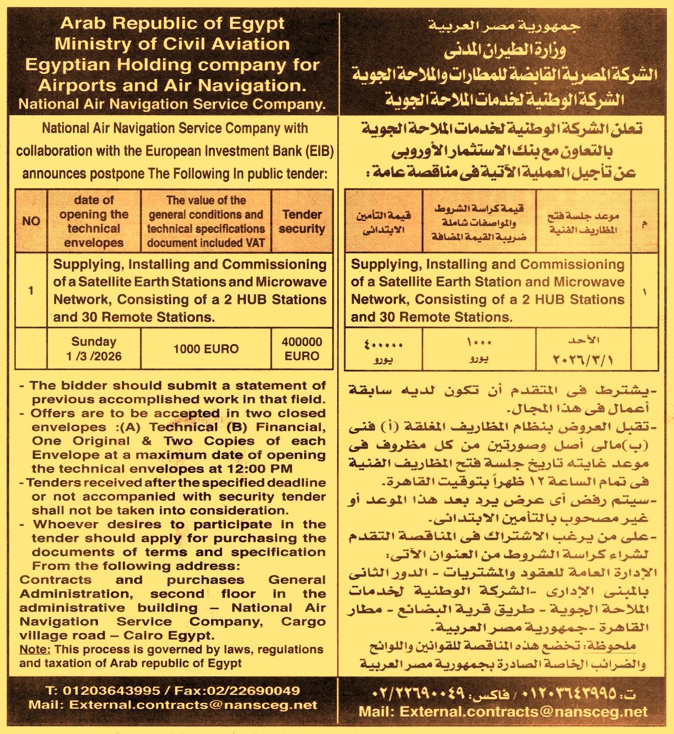 Supplying, Installing and Commissioning of a Satellite Earth Station and Microwave Network,