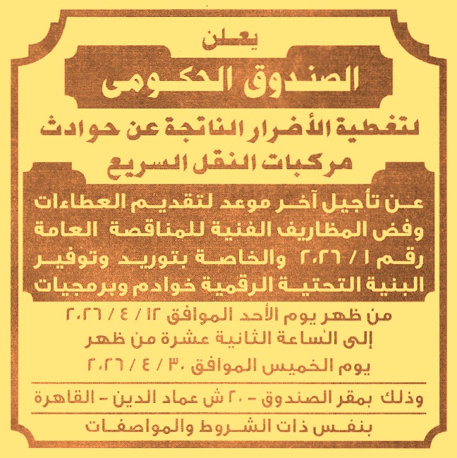 يعلن الصندوق عن تأجيل جلسة فتح المظاريف الفنية