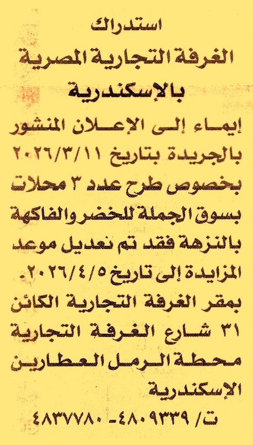 تعلن الغرفة عن تأجيل جلسة المزايدة العامة لعملية