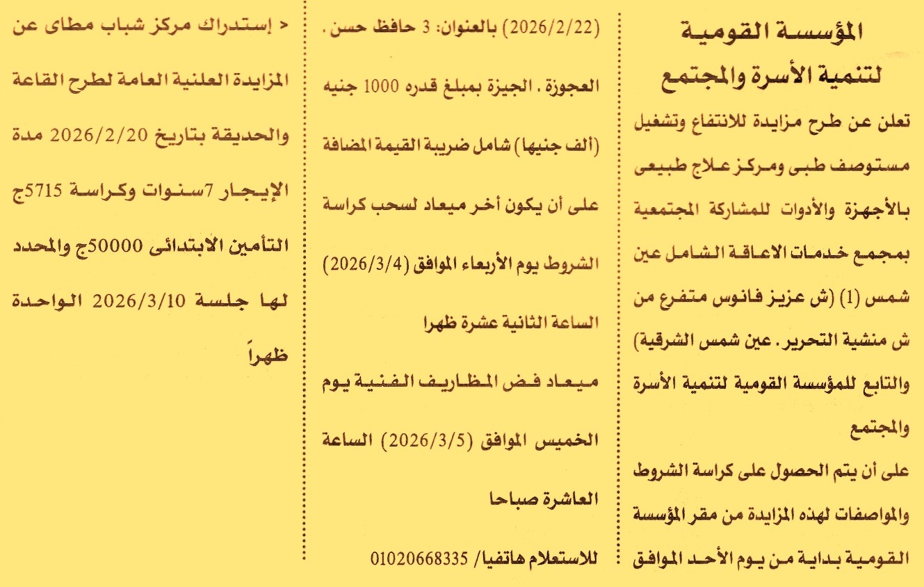 (أخر موعد لشراء الكراسة يوم 4/3/2026 الساعة 1 ظ)