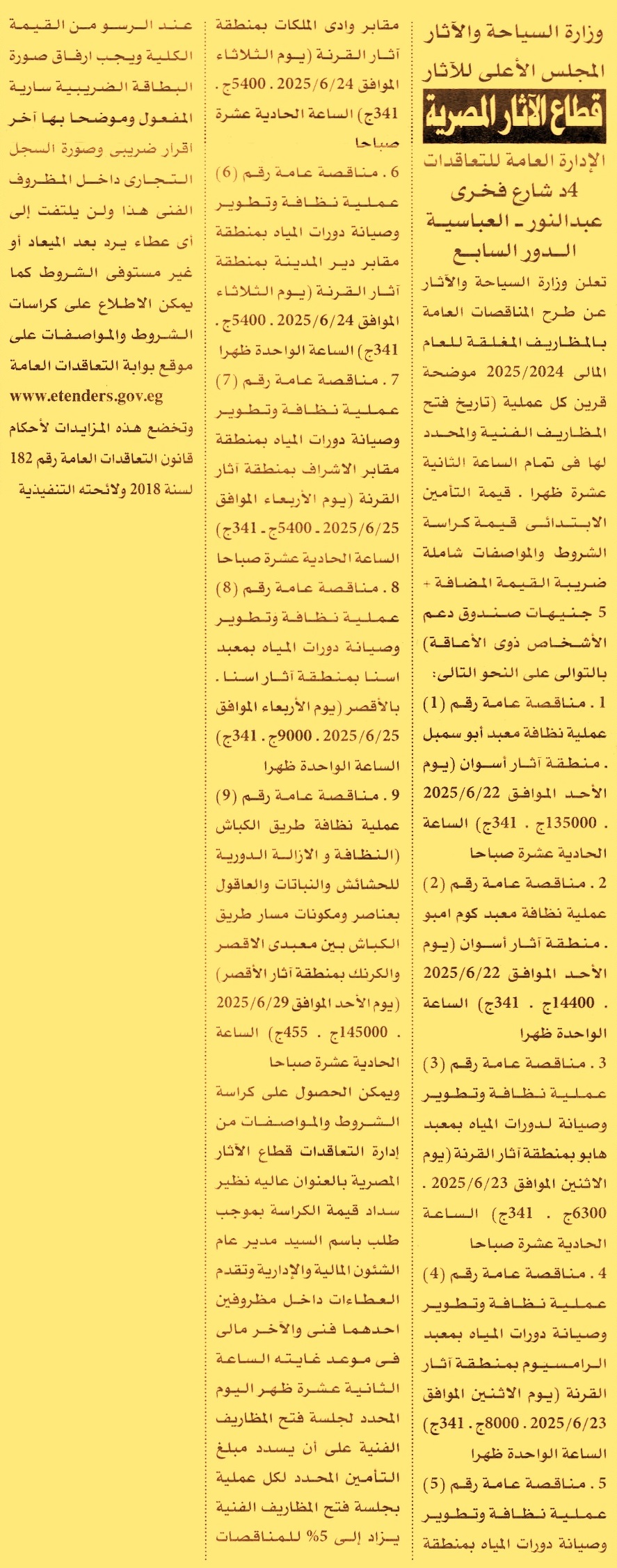 مناقصة عامة رقم 1/2024/2025 لعملية