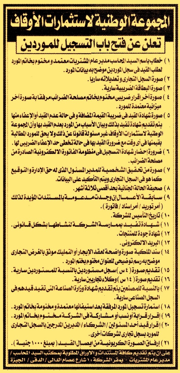 HOT Information فتح باب القيد بسجل الموردين عن جريدة الجمهورية Post navigation الجمعية الخيرية الإسلامية بالقاهرة