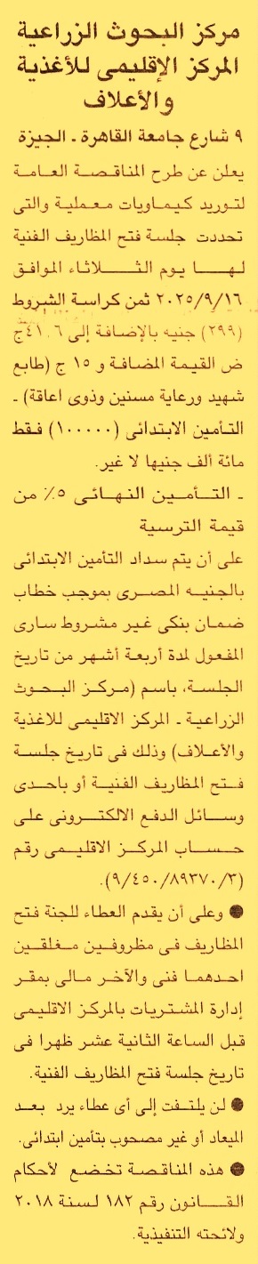 HOT Information مناقصة عامة لعملية توريد كيماويات معملية (مدة سريان خطاب الضمان 4 أشهر) عن جريدة الجمهورية Post navigation الجمعية التعاونية المشتركة بمنوف نادي سموحة الرياضي الاجتماعي