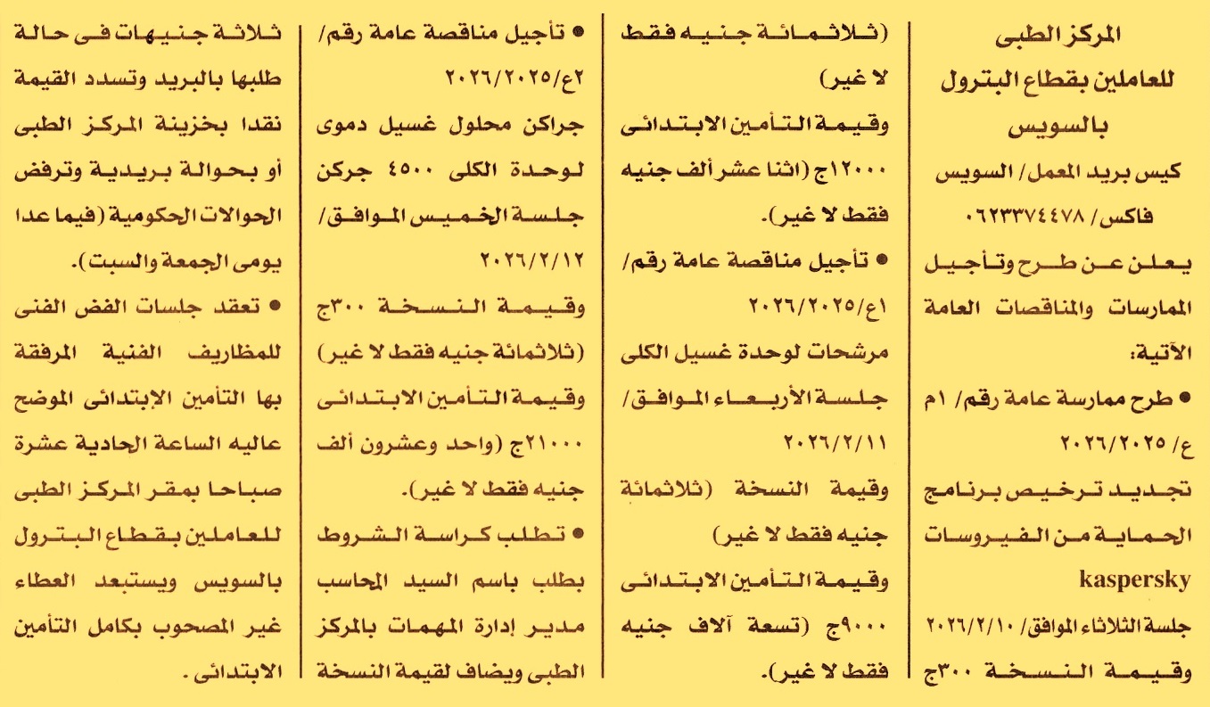 HOT Information ممارسة عامة رقم 1م ع/2025/2026 لعملية تجديد ترخيص برنامج الحماية من الفيروسات Kaspersky عن جريدة الأخبار Post navigation الشركة المصرية للمطارات مركز شباب أبناء السويس
