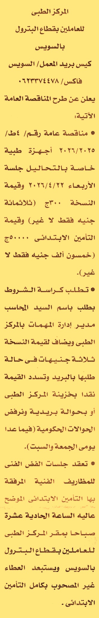 مناقصة عامة رقم 4ط/2025/2026 لعملية