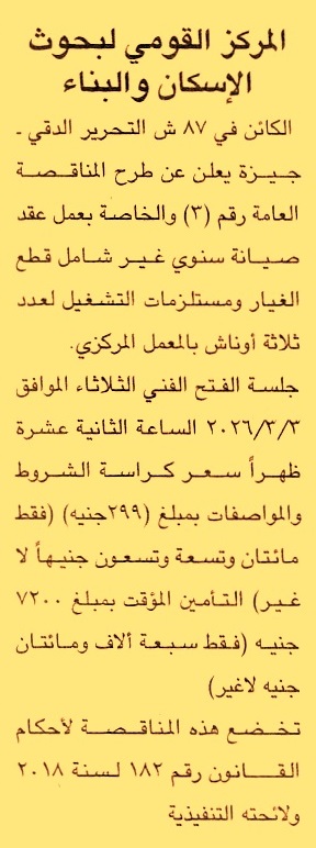 إبرام عقد صيانة سنوي غير شامل قطع الغيار ومستلزمات التشغيل