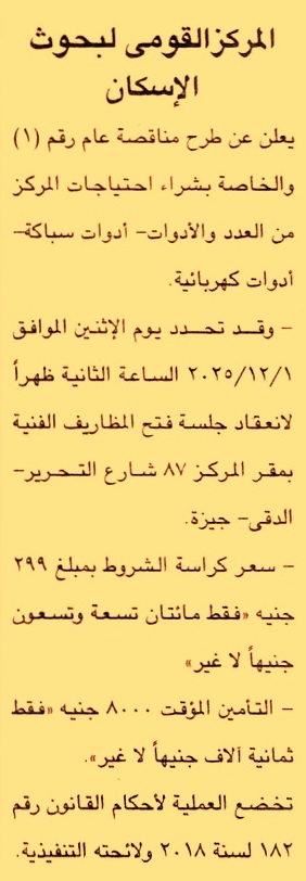 HOT Information مناقصة عامة رقم 1 لعملية توريد احتياجات المركز من العدد والأدوات وأدوات سباكة وأدوات كهربائية عن جريدة الجمهورية Post navigation محافظة سوهاج مركز شباب القنطرة شرق الجديدة بالإسماعيلية
