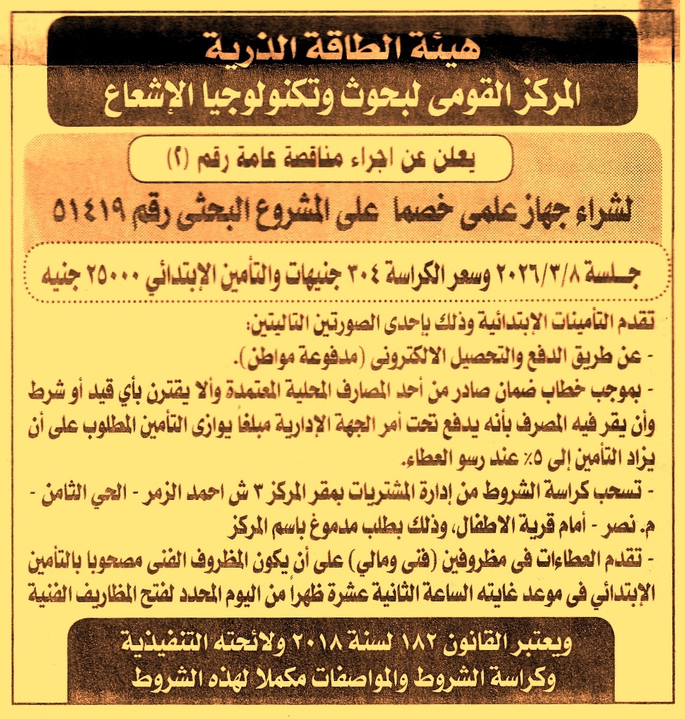HOT information مناقصة عامة رقم 2 لعملية توريد جهاز علمي خصما على المشروع البحثي رقم 51419 عن جريدة الأخبار Post navigation محافظة كفر الشيخ مركز التنمية الشبابية بمدينة بنها