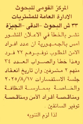 يعلن المركز عن استدراك بخصوص الإعلان المنشور يوم 7/8/2025
