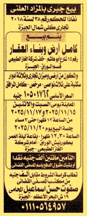 (المعاينة يومي 15/11/2025 و17/11/2025 من الساعة 12 ظ حتى 3 م)