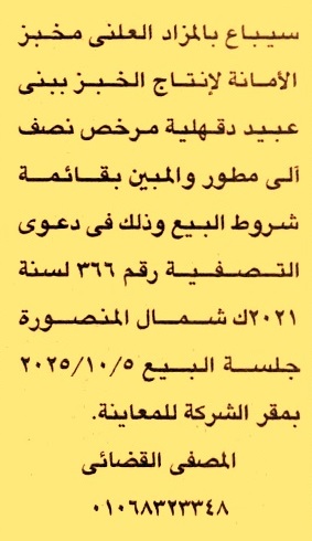 HOT information مزايدة علنية لعملية بيع مخبز الأمانة لإنتاج الخبز ببني عبيد – الدقهلية مرخص نصف ألي مطور عن جريدة الجمهورية Post navigation مديرية الشباب والرياضة بالمنوفية جهاز تنمية مدينة دمياط الجديدة
