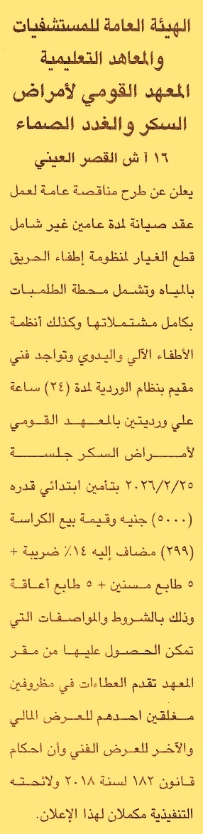 إبرام عقد صيانة لمدة عامين غير شامل قطع الغيار لمنظومة إطفاء الحريق بالمياه