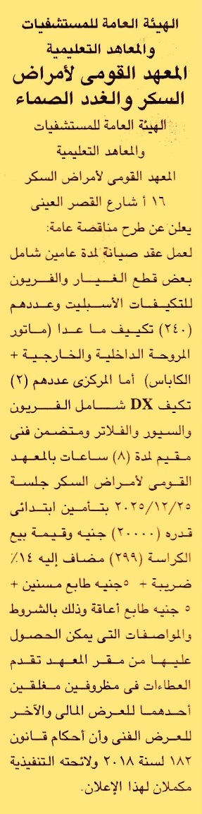 إبرام عقد صيانة لمدة عامين شامل بعض قطع الغيار والفريون