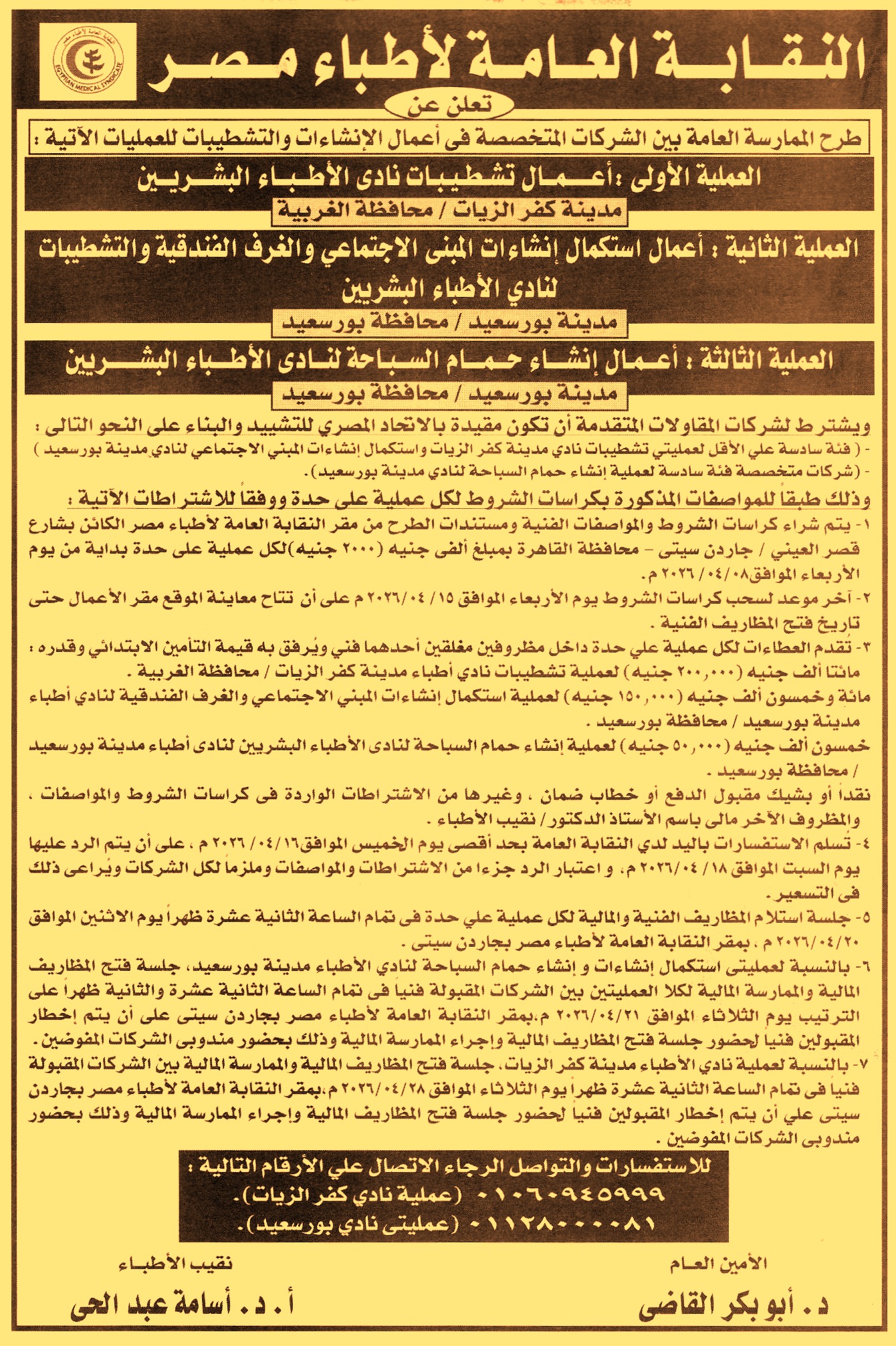 وجلسة فتح المظاريف المالية يوم 21/4/2026)