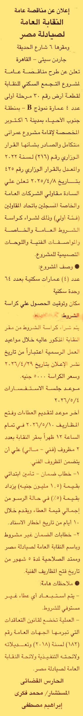 إنشاء عدد 4 عمارة نموذج B بعدد 64 وحدة سكنية