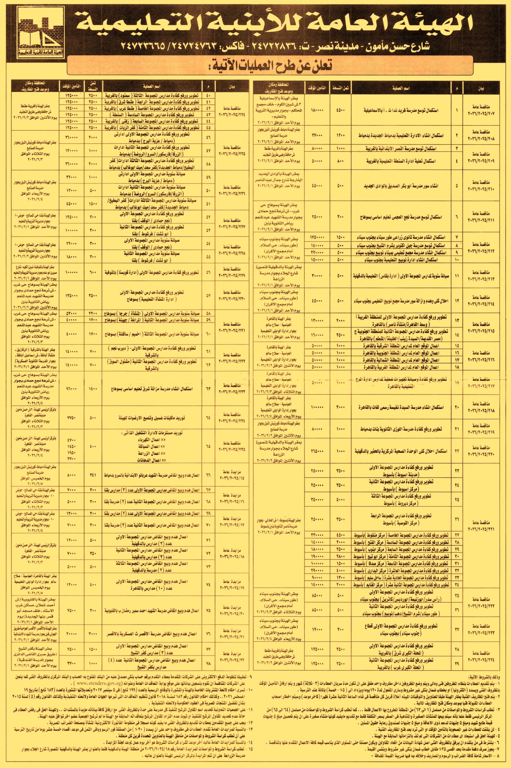 وعلى الجمعيات التعاونية تحديد أسم المقاول المرشح لتنفيذ كل مدرسة على حدة بالمظروف الفني مع ارفاق كافة بياناته مؤيدة بالمستندات وللهيئة الحق في رفض العطاء في حالة عدم تحديد المقاول المرشح للتنفيذ أو ثبوت عدم التزام المقاول المرشح بتعاقداته السابقة مع الهيئة ما لم ترشح الجمعية عضو أخر توافق عليه الهيئة