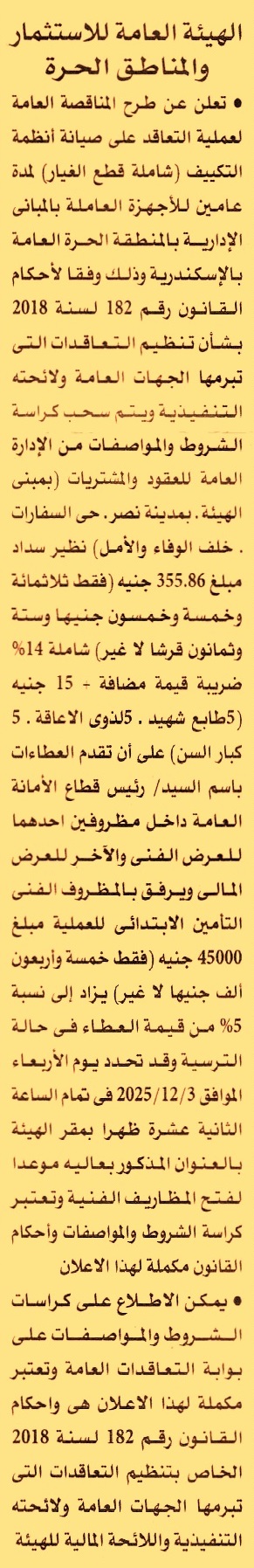 للأجهزة العاملية بالمباني الإدارية بالمنطقة الحرة العامة بالإسكندرية