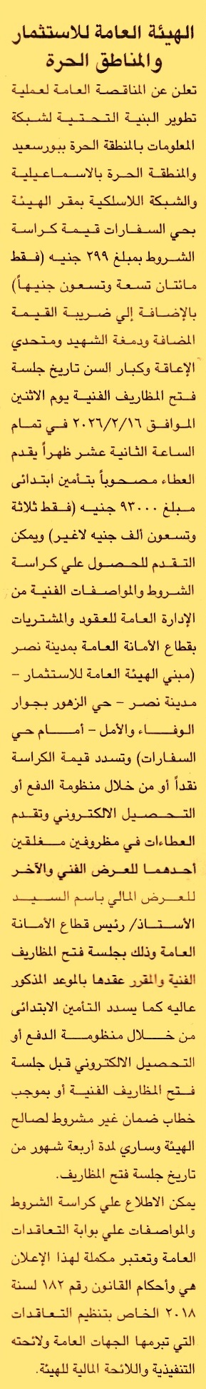 تطوير البنية التحتية لشبكة المعلومات بالمنطقة الحرة ببورسعيد والمنطقة الحرة بالإسماعيلية