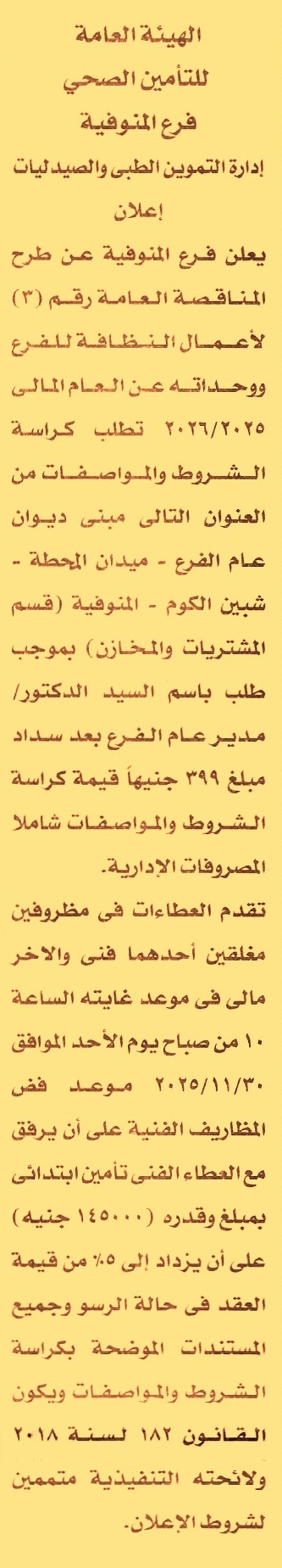 مناقصة عامة رقم 3/2025/2026 لعملية