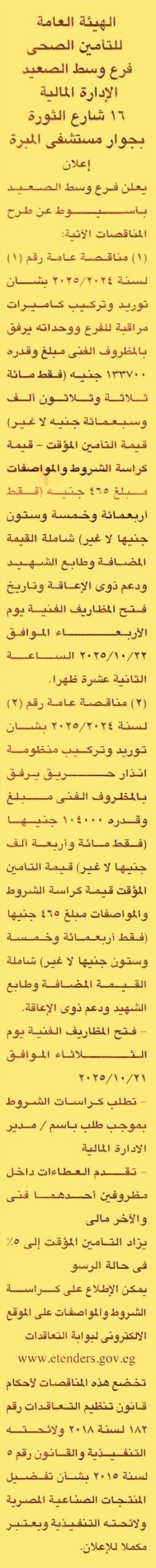 HOT information مناقصة عامة رقم 1/2025/2026 لعملية توريد وتركيب كاميرات مراقبة للفرع ووحداته عن جريدة الجمهورية Post navigation مركز شباب أتريس الهيئة العامة للأرصاد الجوية