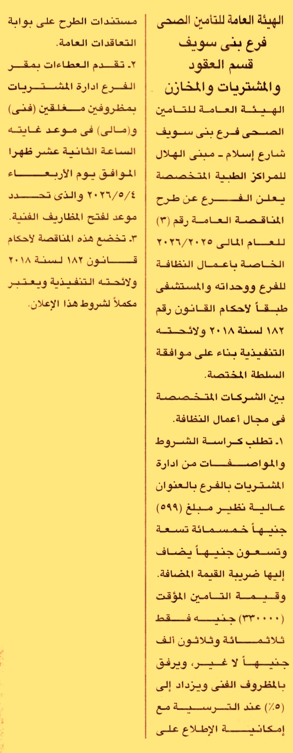 مناقصة عامة رقم 3/2025/2026 لعملية