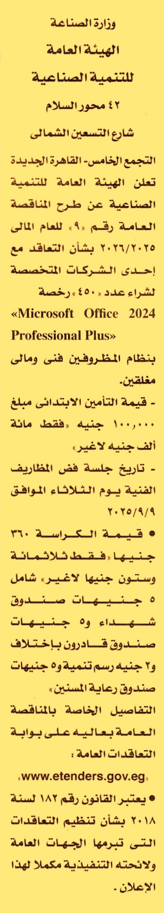HOT Information مناقصة عامة رقم 9/2025/2026 لعملية توريد عدد 450 رخصة Microsoft Office 2024 Professional Plus عن جريدة الأخبار Post navigation الوحدة المحلية لمركز ومدينة الرياض الشركة المصرية للصيانة وخدمات السكك الحديدية