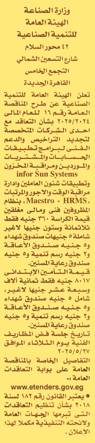 مناقصة عامة رقم 16/2024/2025 لعملية
