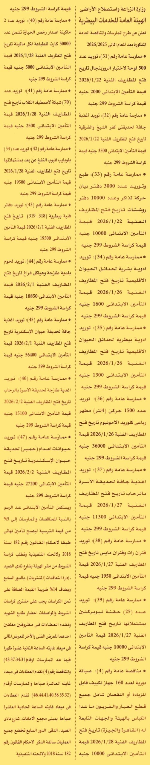 HOT information ممارسة عامة رقم 31/2025/2026 لعملية توريد عدد 500 لوحة لاختبار الروزبنجال عن جريدة الأهرام Post navigation معهد بحوث الأمصال واللقاحات البيطرية مؤسسة أخبار اليوم
